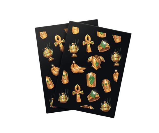 One pack of one hundred sleeves (100) suitable for standard poker-sized cards (66x91mm) emblazoned with the Clank! Logo.