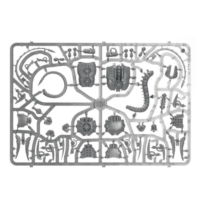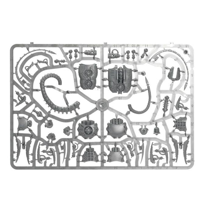 This multi-part plastic boxed set contains 135 components with which to build 3 Necron Canoptek Wraiths. This set comes with 3 Citadel 50mm Round bases.