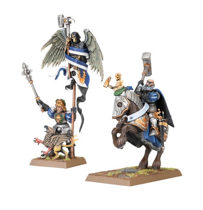 This multipart plastic kit builds two commanders, which can be used as Generals or Captains to lead your Empire of Man armies in games of Warhammer: The Old World. One is mounted on a barded warhorse and one is on foot. The infantry miniature can be built with a great weapon, Battle Standard and hand weapon, hand weapon with pistol, pair of hand weapons, or hand weapon and shield. The mounted miniature can wield a lance and shield, great weapon, hand weapon and shield, or Battle Standard and hand weapon. This versatile kit also comes with other optional extras to further customise your models.