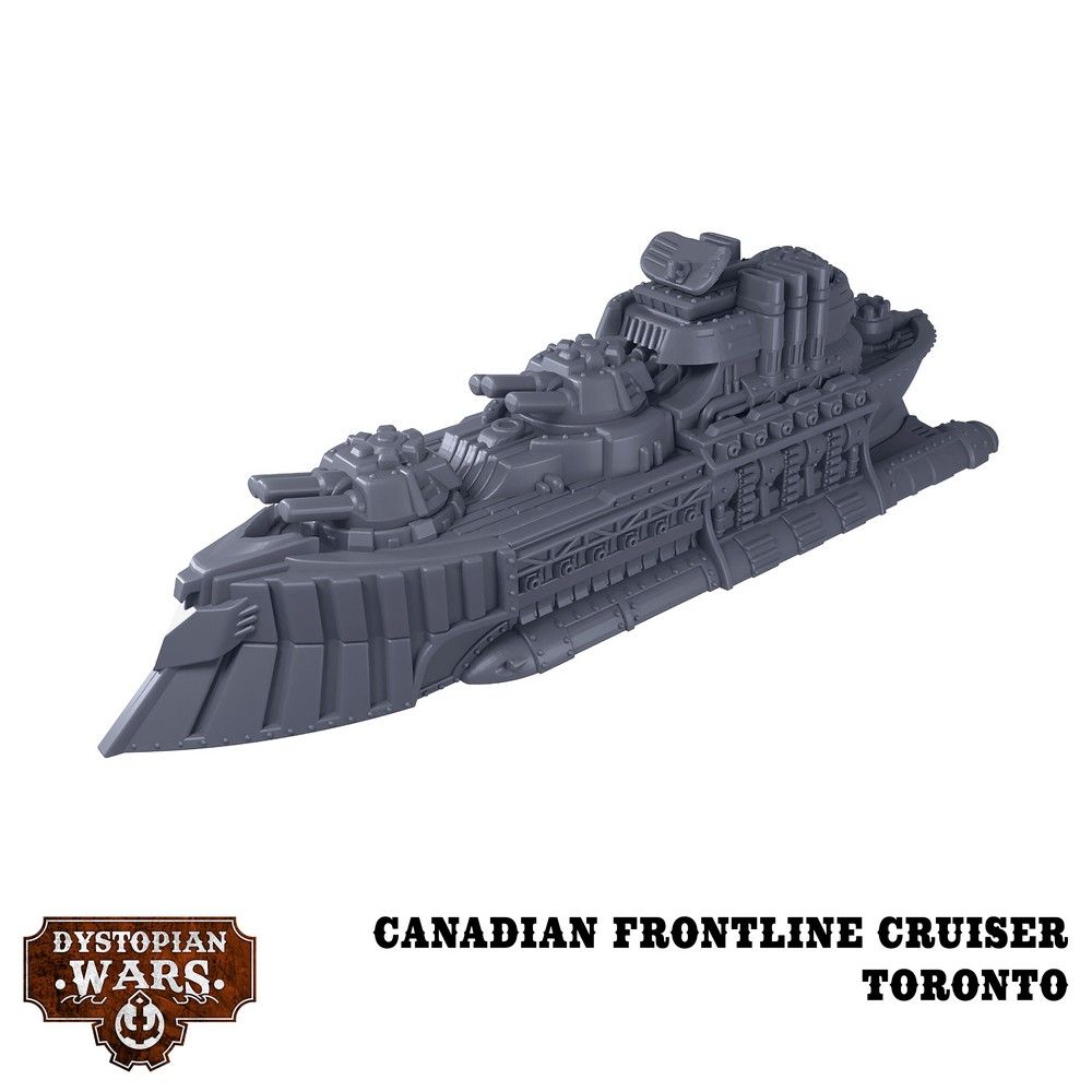 Built on the Newfoundland hull design and outfitted to support fleet operations, the Toronto class Control Cruisers have a vital role in coordinating Canada's defences. The installation of a McGill radar array above the bridge provides an impressive fire control suite. While similar in design and Providing a powerful combination of heavy firepower and an ablative armoured prow, the Bonaventure class serves in the Dominion of Canada's fiercest fighting in the Arctic, Atlantic and Pacific oceans.