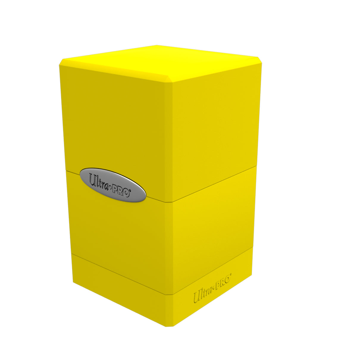 Ultra Pro – Satin Tower Deck Box – Yellow. This Satin Deck Box offers every game deck (up to 100 cards in envelopes) reliable protection from scratches, dirt and water. In addition, it has a compartment in the floor of dice or checkers. Optimum protection for decks Durable material Additional compartment in the floor of dice or game pieces