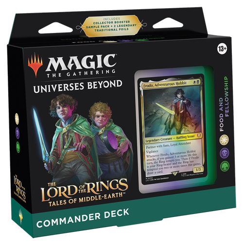 FOOD AND FELLOWSHIP - Get a 100-card White-Black-Green The Lord of the Rings: Tales of Middle-earth deck containing 2 Foil Legendary Creature cards and 98 nonfoil cards
