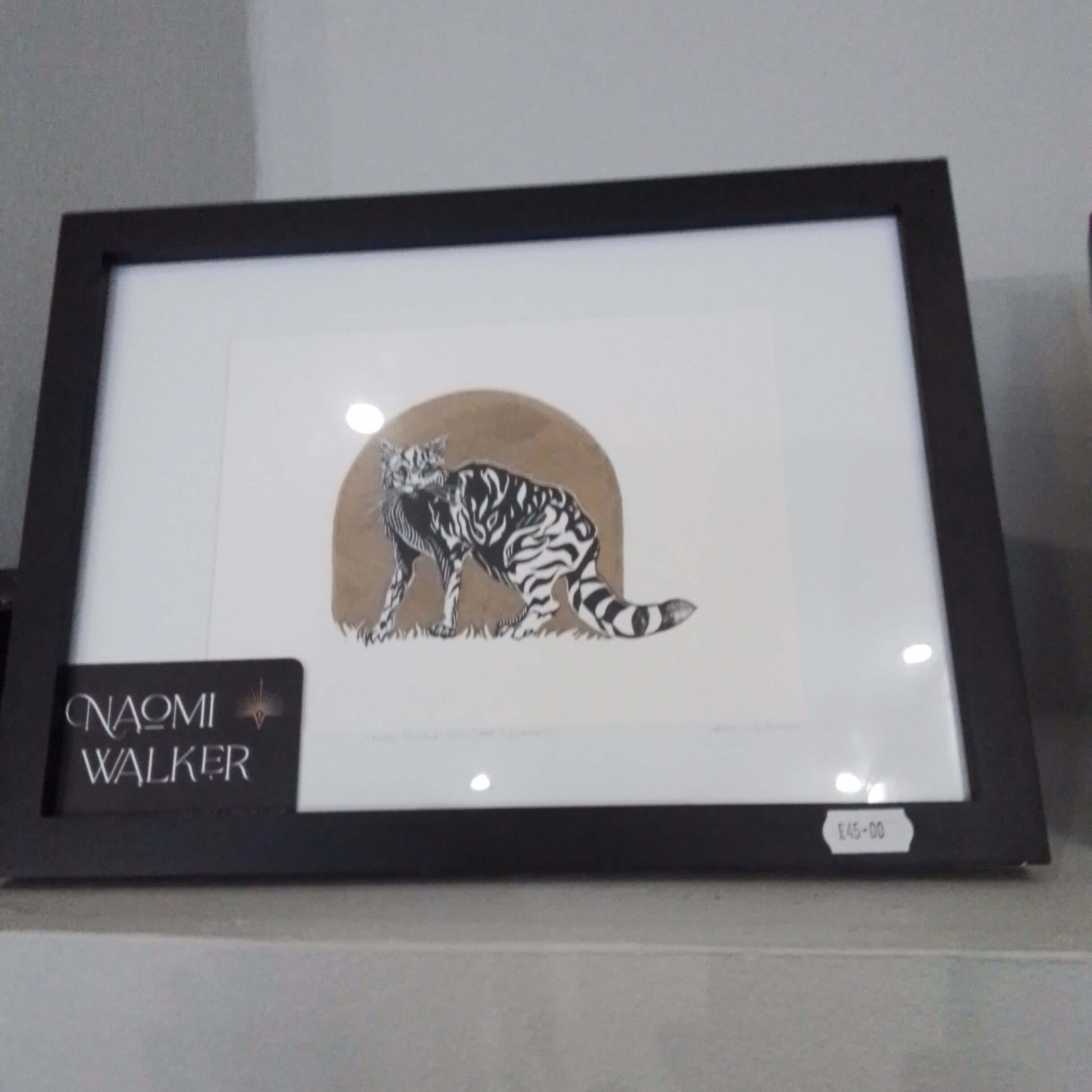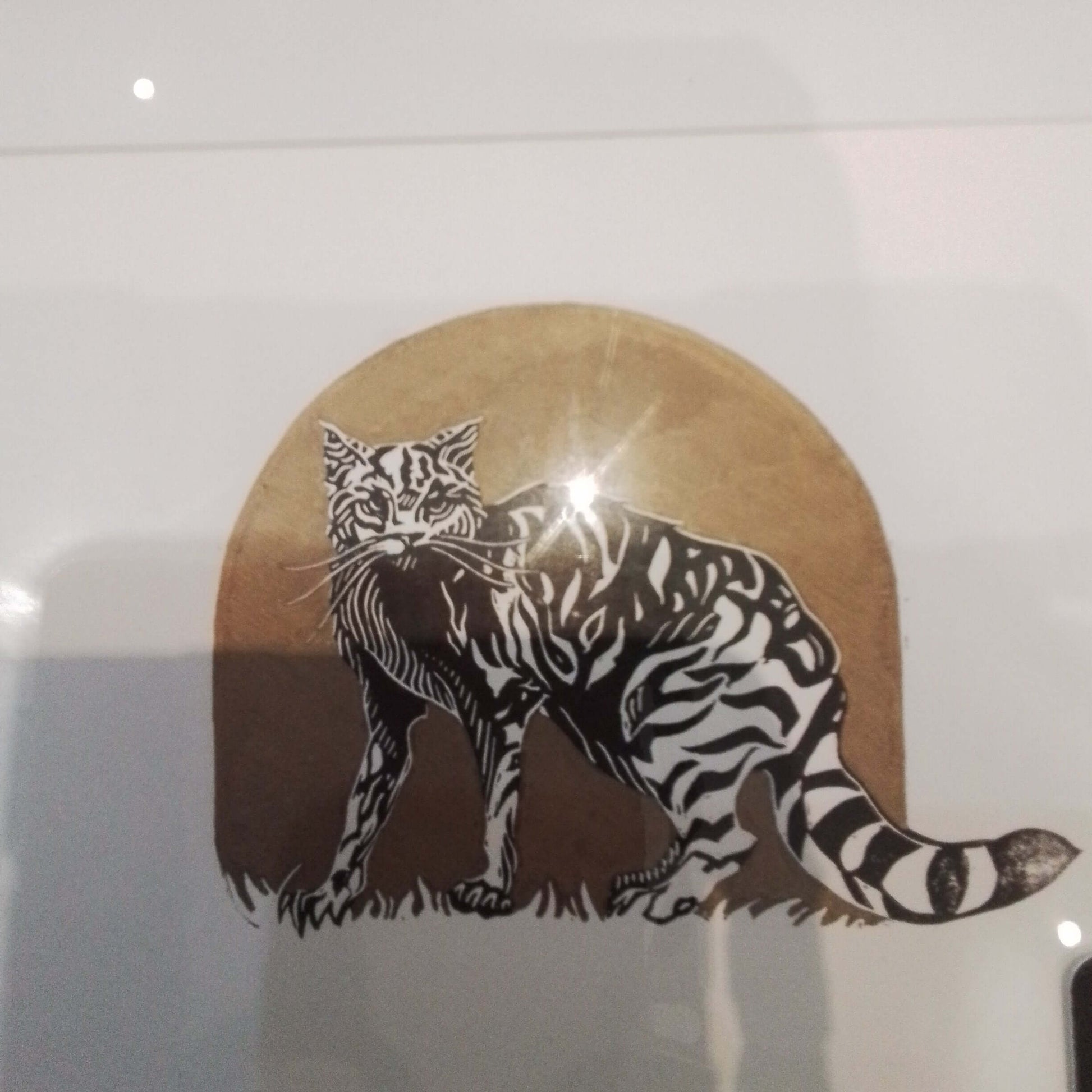 "Fully Guilded Feils Silvestris Grampia" hand coloured linocut print (Framed)