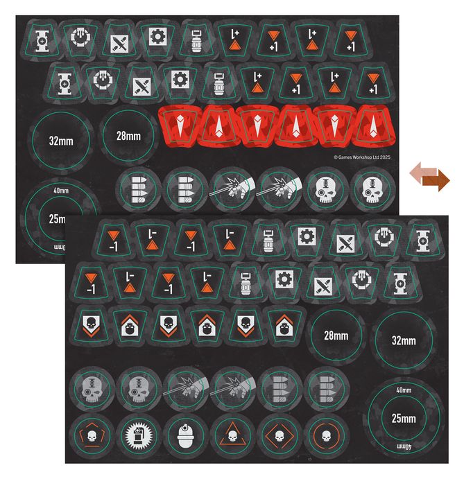 Inside the box, you will also find a sheet of 39 double-sided Deathwatch tokens, so you can easily keep track of your weapons loadout and in-game effects in the heat of battle.