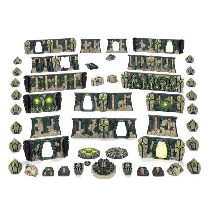 The Tomb Worlds of the Necrons are eternal mausoleums composed of strange xenos machinery. Within their labyrinthine corridors, you'll find teleport pads, deactivated Necron warriors, and a great many sarcophagi containing dormant Necrons and their constructs.