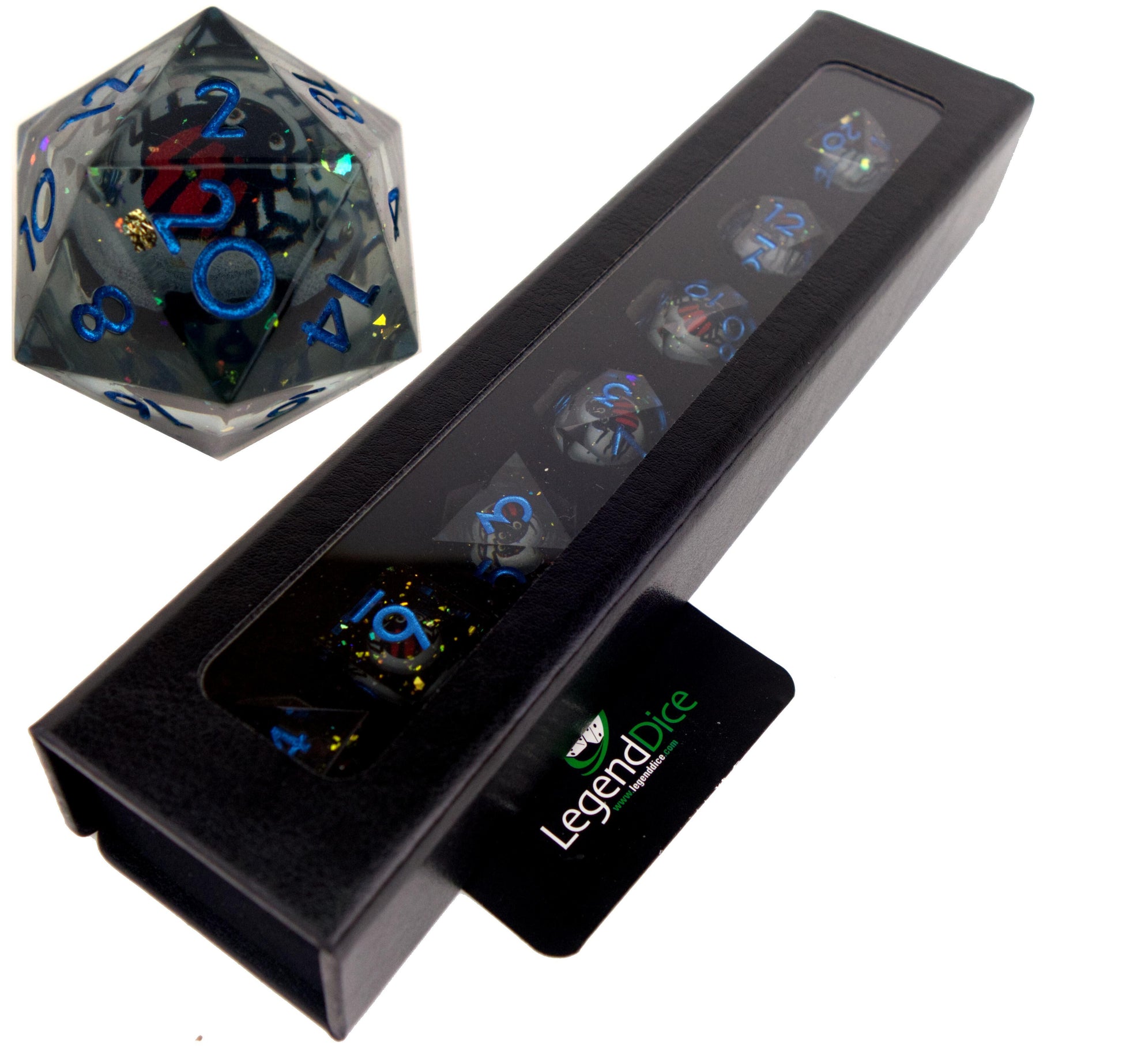 Embark on magical adventures with the Liquid Core Sharp Edged 7 Piece Set, where each roll brings a touch of spectacle and precision to your Dungeons and Dragons gameplay.