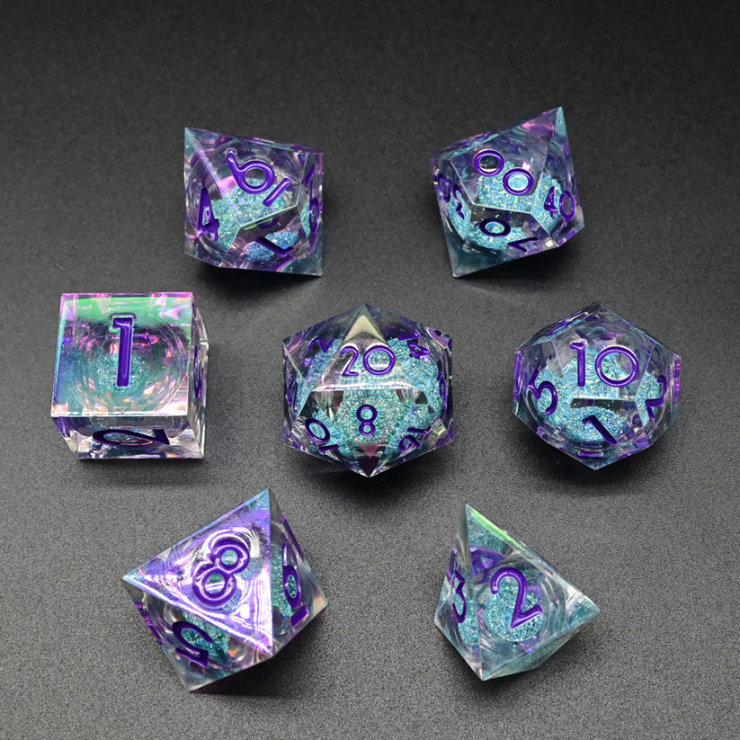 Embark on magical adventures with the Liquid Core Sharp Edged 7 Piece Set, where each roll brings a touch of spectacle and precision to your Dungeons and Dragons gameplay.