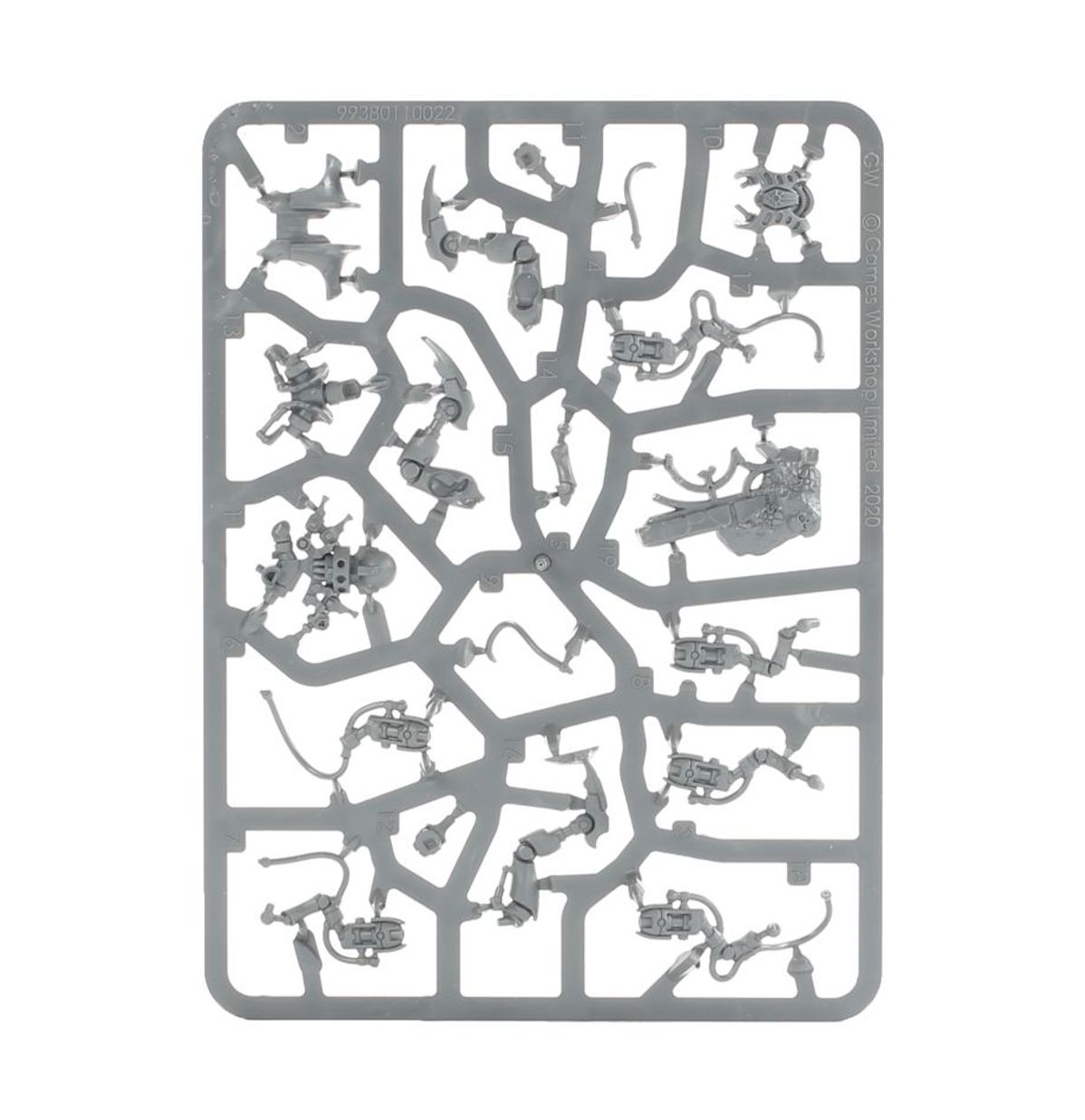 This kit builds a single Hexmark Destroyer, armed with six enmitic disintegrator pistols, and comes with a choice of two heads. The kit is supplied in 19 plastic components and one Citadel 50mm Round Base.