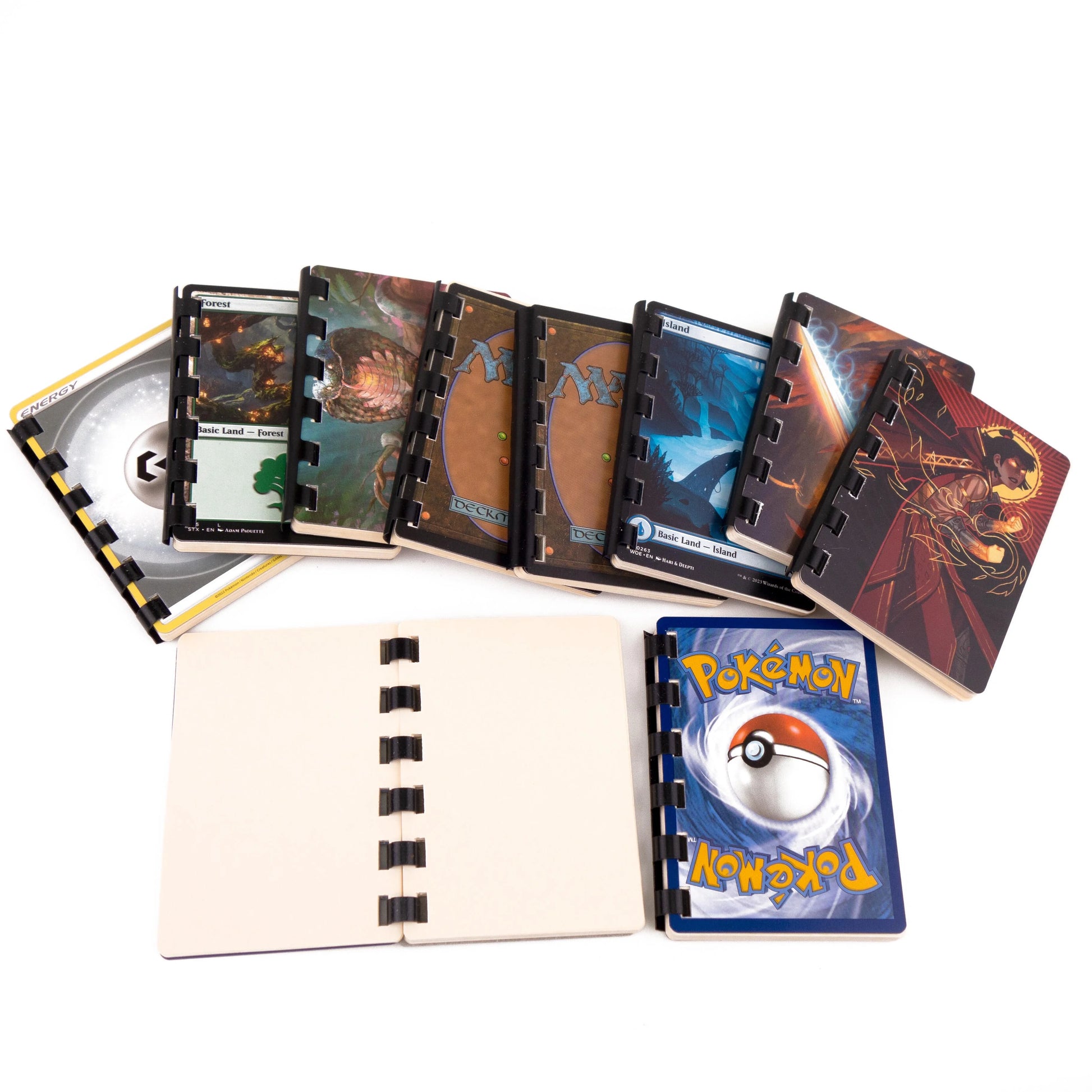 A bulk pack of 40 page notebooks featuring a Trading Card front cover , with a stiff card backer, plastic bound