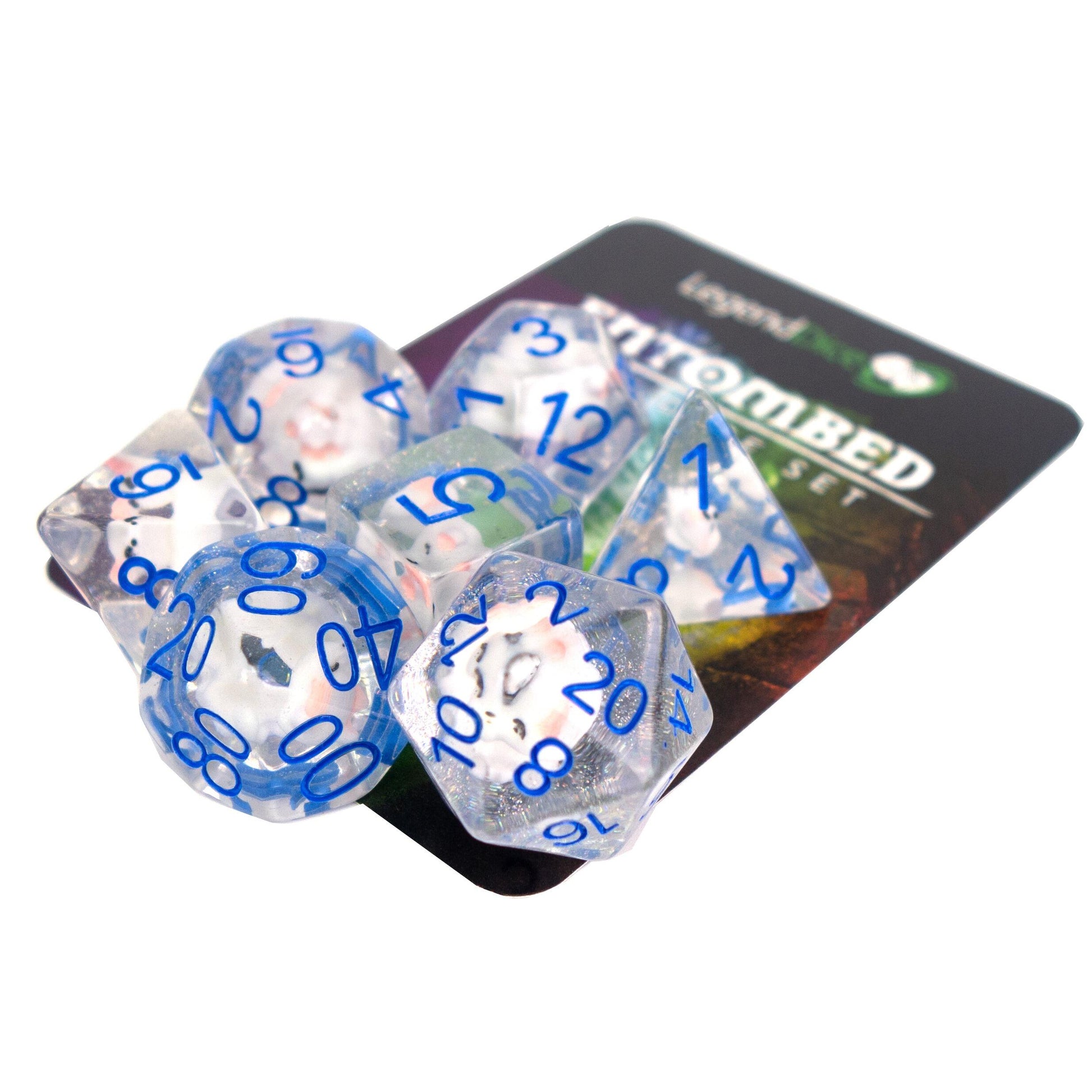 Dive into your Dungeons and Dragons campaigns with the Liquid Core Sharp Edged 7 Piece Set, a collection of dice that offers both precision and magical aesthetics. Each die is crafted with sharp edges for accurate rolling and contains a liquid core filled with sparkling mica, creating a stunning visual effect that enhances the gaming experience. Available in a variety of styles and colours, these dice are designed to complement any DnD adventurer's toolkit, adding a touch of enchantment to each roll.