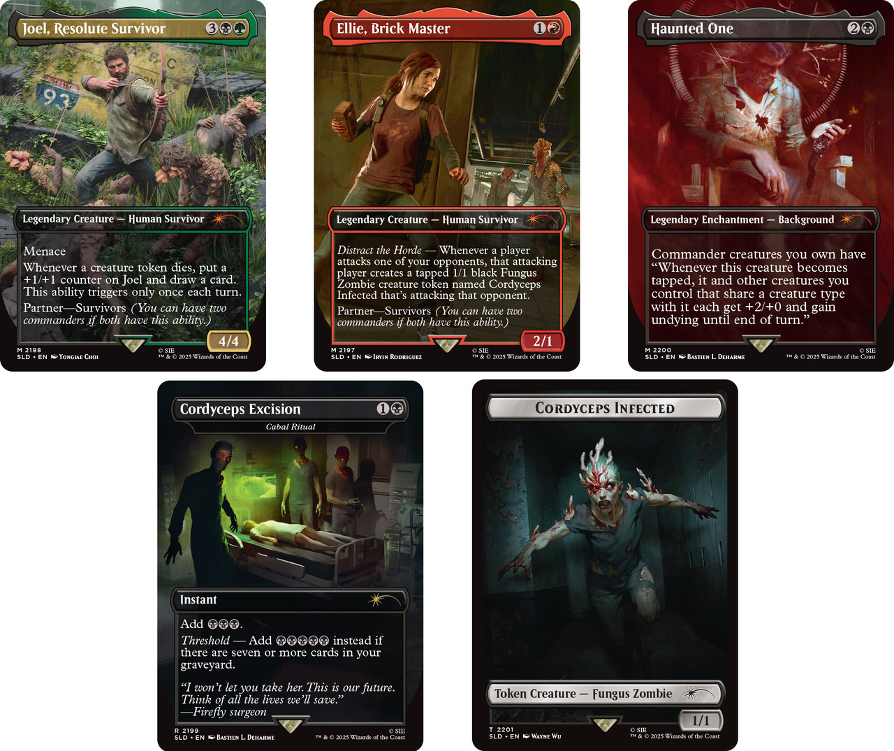 NOTE: The "Survivors" partner mechanic allows the Joel and Ellie cards from Secret Lair x The Last of Us Part I to be played with the Abby and Ellie cards from Secret Lair x The Last of Us Part II. This means that technically, Ellie can partner with her younger self (and Abby can partner with Joel if you're a full monster).