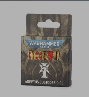 By the Emperor! Grab these dice, specially themed to match your Adeptus Custodes army. Decked out in the colours of the Talons of the Emperor, these dice will bless your table with every roll, allowing you to wipe your enemies out with ease. Each six-sided, round-cornered dice is a deep red colour. The 20 dice in this set each measure 16mm x 16mm and feature the Adeptus Custodes icon on the 6 face and traditional pips on the other faces all in a gold colour. The dice are supplied in a blister pack with a backing card featuring Adeptus Custodes artwork.